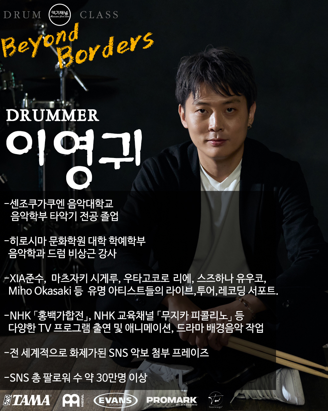 [참가자선정완료] 'Beyond Borders' 드러머 이영귀 & 이준서 드럼 클래스 안내 (8/29)